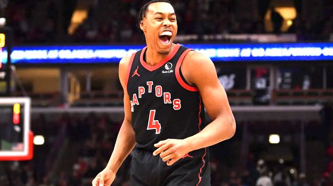 3、巴雷特的实力真的很强,他是猛龙进攻体系中高效的攻坚点与关键球执行者,完美适配球队快攻风格。本赛季他效率显著提升,常规赛首战更以75%命中率轰下25分8篮板5助攻,他有两点作用突出:一是转换进攻中的闪击能力,能快速冲击篮下撕开防线;二是关键时刻的终结力强,末节比赛进入胶着时,存在感很强。本场比赛,他的效率很高,12中9,得到20分6篮板。